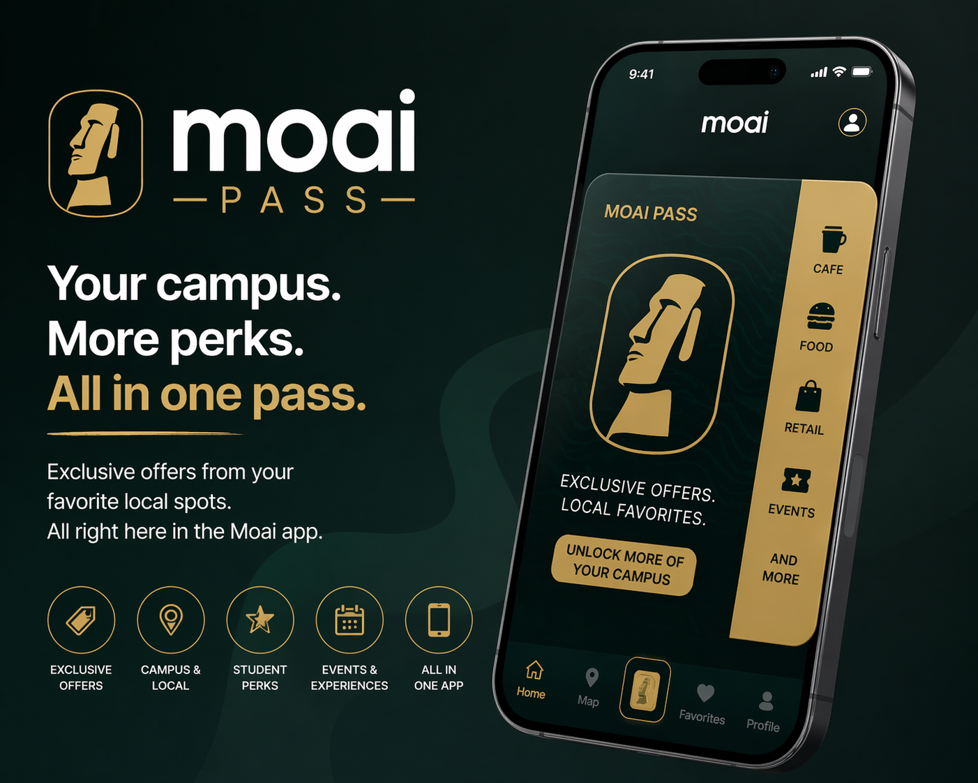 Moai Pass is Moai’s business partnership program, built to connect approved local businesses with verified university students through exclusive in-app visibility, student-focused offers, and targeted campus discovery. Instead of relying on generic advertising, businesses featured on the Moai Pass are placed directly inside the Moai ecosystem, where students already go to discover what to do, where to go, and which local spots are offering the best value.